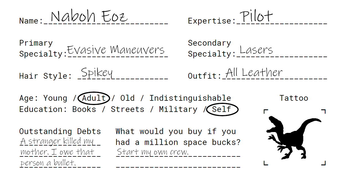 Welcome to an interplanetary sci-fi setting where morally-flexible space rogues take on a variety of legal, extralegal, and illegal jobs. When the authorities can't catch you, karma might. The galactic scales will eventually balance out and no one can keep flying forever.